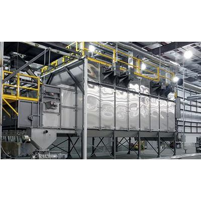 The Advanced Feature Dryer is renowned for its balanced Air Circulation System. The addition of variable frequency direct drive fans provide uniform airflow across the entire width of the beds minimizing moisture deviation and providing flexibility to maintain even efficient drying regardless of product size, shape and density. The result is finished product with less than 1/2 percentage point deviation in moisture. Our new redesigned chute is complete with span and speed controls for "in-process" adjustments, provides accurate product spread for even bed depth.