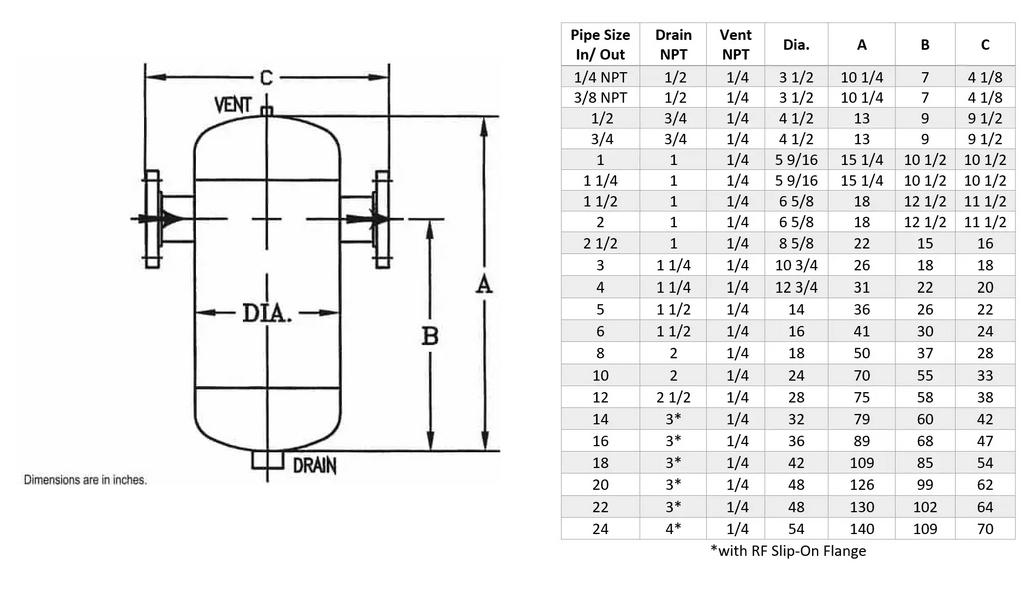- Corrosion allowance of 1⁄16” ensures years of steam or air moisture separator service.