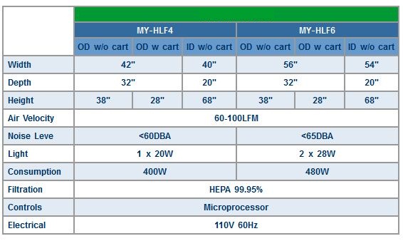 The Mystaire horizontal laminar flow clean bench is specially designed to provide a Class 100/ISO 5 particle-free clean-air environment needed for laboratory testing, manufacturing, inspection, or pharmaceutical procedures. Precise horizontal laminar airfllow is obtained through a high-quality HEPA filter installed in the rear baffle of the cabinet. Air is forced through the HEPA filter and then enters the chamber through a diffuser that distributes clean Class 100/ISO 5 particle-free clean-air over the entire work surface.