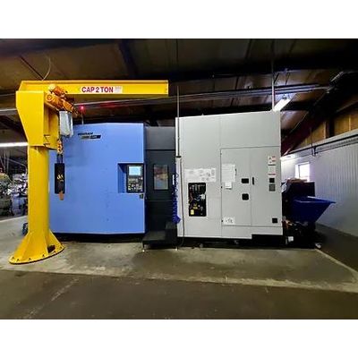 X = 55.1", Y = 47.2", Z = 53.9".  Max Workpiece Size 57" x 61" (H). 31.5" x 31.5" Twin Pallet Changer. Full 4th Axis Capability. 90 Automatic Tool Changer. CAT50 Spindle Taper. 50 HP, 10,000 RPM Spindle. Tool Breakage Detection. Renishaw Probing. In Process Renishaw Inspection.