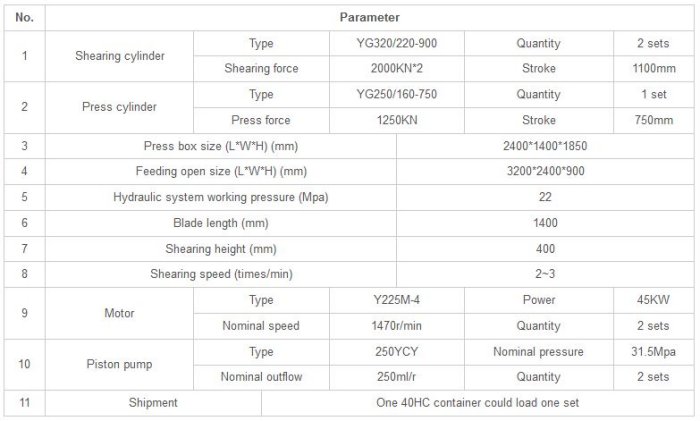 HS-400 horizontal metal shear is applicable for cutting the metal shaped in different cross section like round, square, channel, angle, I shape, plate and various waste structural metal at cold state. It brings convenience to the baling, storage and transportation of scrap metal materials, also offers qualified furnace charge for smelting plant. With large application range, this machine is commonly used as the processing equipment in the metal recycling unit, casting room of factory and machinery construction industry. Our shear has speeder, when unload, one cylinder will drive the main shearing cylinder to move, with more than 50% faster speed, save more than 30% time.