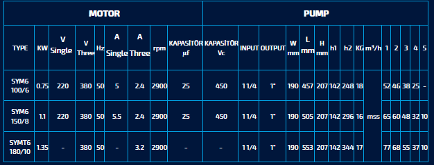 Sumak - Model SYM6 100/6 -Horizontal Shaft Multi Stage Pumps
