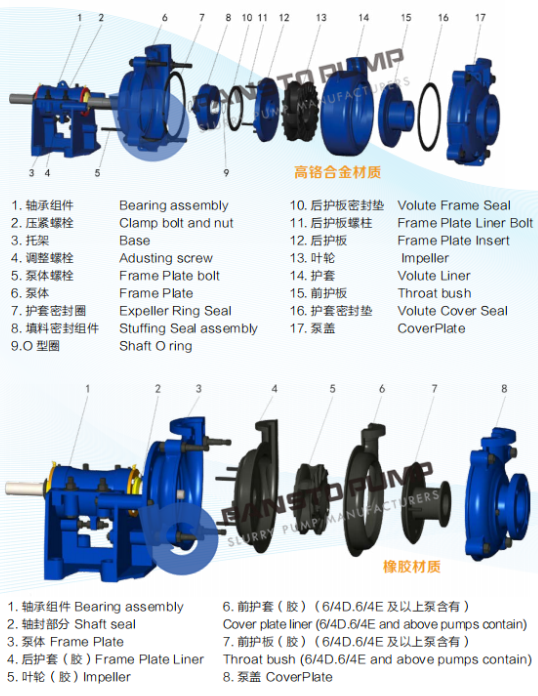 PM (J) model for medium-sized slurry pump, is suitable for conveying of fine particles, and concentration of slurry or low corrosive slurry. Each pump imports are horizontal, look from the direction of transmission pump is clockwise. Pump shaft seal types mainly include packing seal, vice impeller sealing and mechanical seal.
