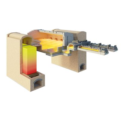 The regenerator chambers can be equipped with different checker types and qualities according to the position of each port. This facilitates the implementation of a furnace suitable for the raw materials used, with a long life and achieving the perfect melting process. A weir wall built into the bottom of the melting end, which is also called barrier, and a deep refining part increase the flexibility and glass quality.