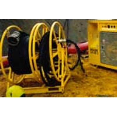 Reel with Hydraulic and Discharge hoses.