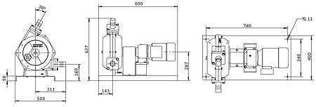 Maximum flow rate : 6000 l/hr. Maximum speed : 165 RPM. Maximum discharge pressure : 2 bar.