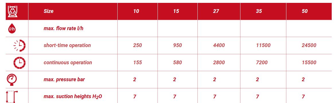 Advantages: Self-priming up to 7 m H2O. Safe to run dry. Absolutely resistent to solids. I.e. Ideal for abrasive media. Gentle pumping of sensitive media. No seals and valves. Pumping of viscous meda. Ideally suited for aggressive media