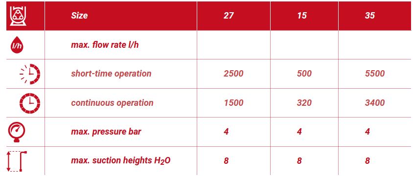 Advantages: Self-priming up to 8 m H2O. Safe to run dry. Absolutely resistent to solids. I.e. Ideal for abrasive media. Gentle pumping of sensitive media. No seals and valves. Pumping of viscous media. Ideally suited for aggressive media