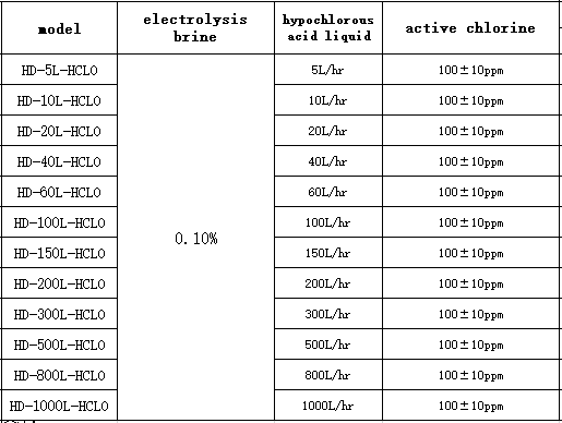 - The final product- hypochlorous acid liquid (5000ppm) in the storage tank;