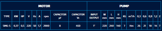 Sumak - Model SM6-S -Hot Water Pressurization Water Pump