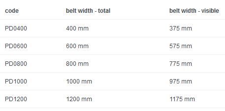 Conveyors are supplied in these standard widths: