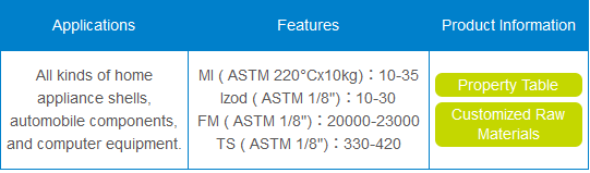 ABS is a graft copolymer of acrylonitrile-butadiene-styrene three monomers. ABS is the acronym of acrylonitrile (“A”), butadiene (“B”) and styrene (“S”). Known as a common plastic material, ABS is an easy-to-process and -shape thermoplastic polymer material with high strength and strong tenancy.