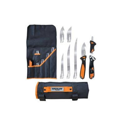The Havalon Talon features the patented Quik-Change II Interchangeable Cutlery System. Quik-Change II is an internal locking mechanism which allows users to seamlessly change blades without losing any cutting area. The Talon’s adaptable design allows it to fit any style Talon blade big or small with the press of a button. The Talon also features a removable back panel for easy clean up after filleting or processing, and it comes with a rugged nylon roll-pack to store a variety of blade styles and sizes. With an infinite list of uses and possibilities, the Talon is the next evolution in cutlery.