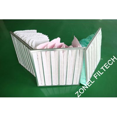The pocket bag filter material was adopted the nonwoven filter material with the relevant filter efficiency, for improve the dust loading and reduce the air resistance, the filter pockets will be divided into several small spaces, all the synthetic material will sealed with heat welding and the fiber glass will be sewn by sewing thread but the seam will be sealed with thermoplastic so as to guarantee the filter efficiency at the right requested data.