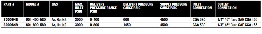 The model 601 is designed for applications where weight and size are critical factors. Used for HVAC purging, pressure testing and blanketing with nitrogen or other inert gases. Gauges feature rubber gauge guards for added protection in abusive conditions. Plastic knob for easy grip and precise adjustment. Maximum delivery pressure 400 or 800 PSIG