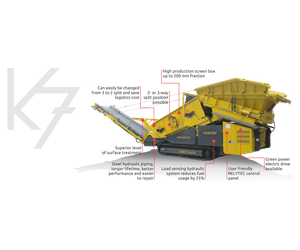 The most heavy duty scalper on the market. The K7 and the K7e with its high screen box is designed for heavy duty scalping. The hybrid K7e is diesel/electric driven with plug-in and plug-out functionality for zero emission processing. When the scalping is rough the K7e does the job!Most popular related searches