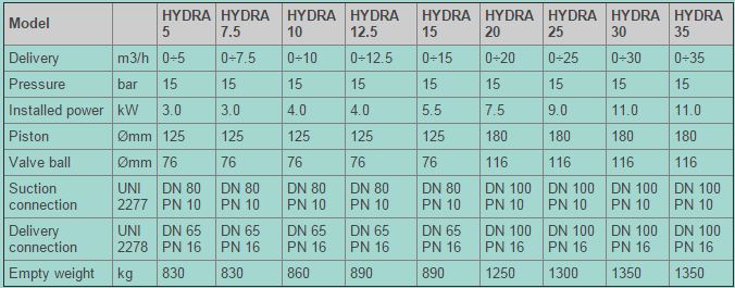 The HYDRA double acting piston pump is particularly suited for conveying products with a high percentage of solids, which are hard to filter and drain. Modular pump body; sleeve and rod are lined by thick chromium or ceramic plating.