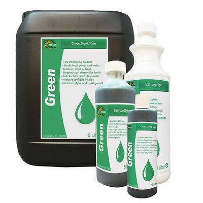Hydra Green Liquid Dye provides an impressive reflection and colour to your pond and/or water feature and has been used by the likes of landscape gardeners, garden pond/water feature keepers, local authorities, golf courses, and farm ponds. With its quick dispersion quality and high concentration, its usage, even in low quantity, is enough to enhance the aesthetic appeal of your pond or water feature. It safely protects and shades your pond or water feature in a green colour.