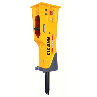 High frequency and high production hydraulic breakers designed specifically for mini-excavators and skid steers for light to medium breaking of rock and concrete. These hammers are effective in a wide range of construction and demolition applications from breaking non-reinforced concrete with a RHB 303-6 or 304-6 on a mini-excavator to removing concrete sidewalks and pads with a RHB 305-6 on a skid steer. These hammers have been designed to eliminate the unnecessary rubber bladder type accumulator, minimizing maintenance and downtime.