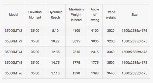 The Model 35000MT Hydraulic Range is a robust and versatile machinery designed primarily for heavy-duty applications in various sectors, including forestry, industrial operations, marine environments, trailers, and recycling works. This machine is engineered to handle the heaviest loads with utmost precision and stability. It`s equipped with advanced hydraulic technology, ensuring efficient power transmission and operational accuracy. The hydraulic system is designed to meet the rigorous demands of continuous operation, minimizing downtime and maintenance. Its maximum weight capacity at the head allows it to lift and maneuver substantial loads effectively, making it an essential asset for operations requiring consistent heavy lifting. Built with durability in mind, the Model 35000MT is constructed using high-grade materials and components, guaranteeing long-term reliability even in the most challenging working conditions.
