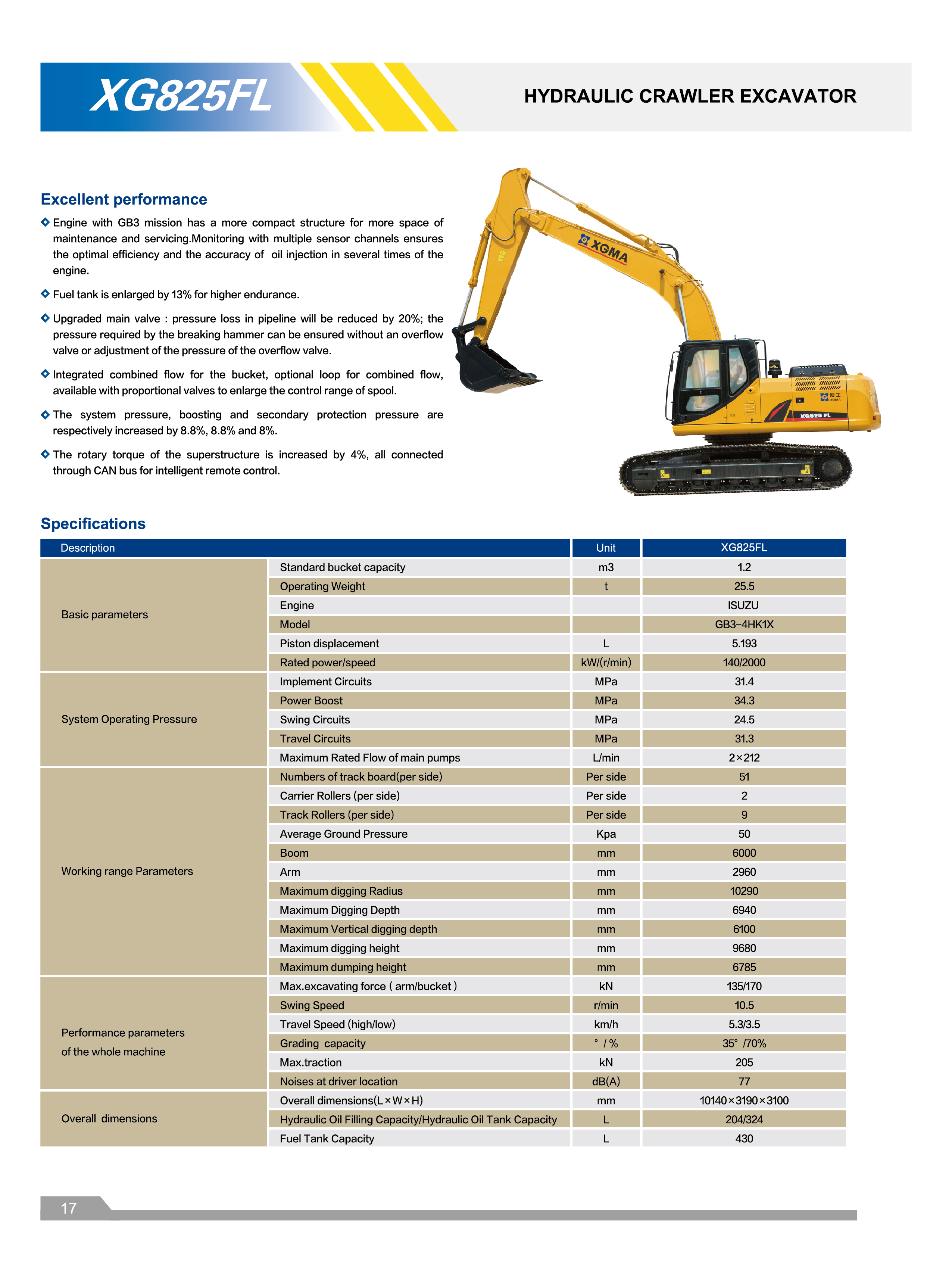 XGMA - Model XG825FL -Hydraulic Crawler Excavator
