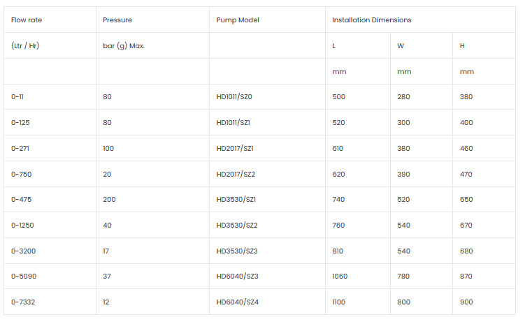 Performance conforms to API 675. Glandless design and entirely Leak Proof operation. Integrated Pressure Relief Valve.Diaphragm is always balanced between the pressure exerted by the hydraulic oil and liquid to be dosed. Longer Diaphragm Life. Automatic air bleeding from the hydraulic oil ensures better metering accuracy. Manual stroke adjustment by eccentric.