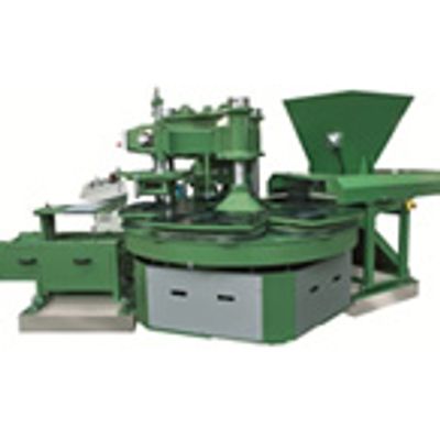 • Automatic 5-station hydraulic revolving press, suitable to mould double-layer cement-agglomerated products up to the size 400×400 mm.