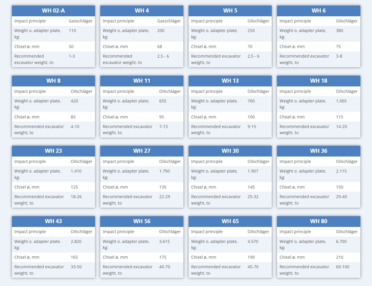 WIMMER - Model WH -Hydraulic Hammers