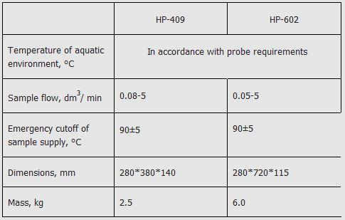Water flow stabilization, Sample flow control, Iron oxide, mechanical admixture removal/ H-cation exchange of sample, Sample flow display, Emergency cutoff of sample supply.