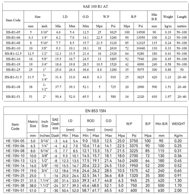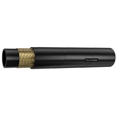 SAE 100 R1 reinforced hydraulic hose is widely employed for medium-pressure hydraulic systems. It can work under higher pressure compared to other rubber hoses owing to its high tensile braided steel wire reinforcement. The hose comprises the inner tube, reinforcement, and outer cover. The tube is made from synthetic rubber with excellent oil resistance features, which allows the hose to deliver oils or fluids more effectively. The reinforcement layer comprises one single layer with high-tensile braided steel wire. It makes the hose work well in high-pressure applications. The outer cover is made from rigid synthetic rubber, which keeps the hose resistant to weather, aging, abrasion, corrosion, etc.
