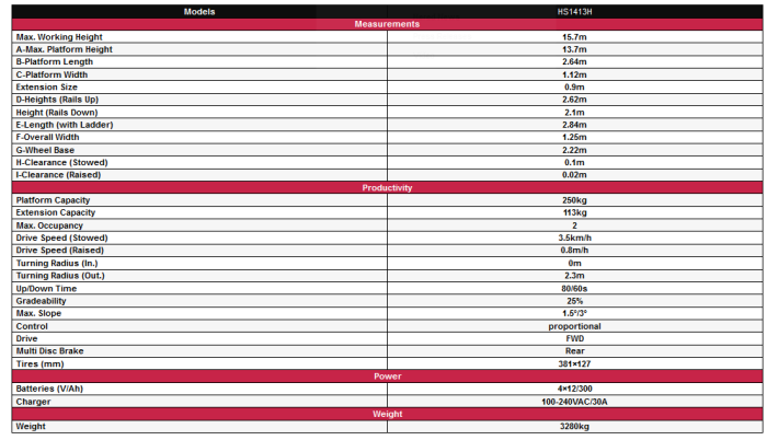 Max. Working Platform Height 15.7m