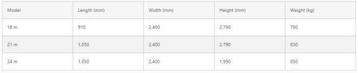 - Available models: 18, 21 and 24 meters