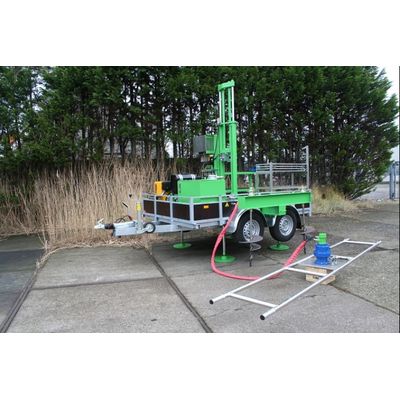 Purpose designed hydraulic wrench for driving ground anchors of the 100 kN and 200 kN stand-alone and trailer-based CPT penetrometer rigs into and out of the ground. To be operated by 2 persons. The hydraulic power for the wrench is supplied by the power-pack of the CPT penetrometer rig. The wrench comes complete with 2 high-pressure hydraulic hoses of 6 meters length and is fitted with easy-to-use push/pull couplings for connection to the hydraulic circuit of the CPT penetrometer rig. The wrench is operated by one of the 2 operators by means of an electrical switch that controls proportionally the hydraulic valve on the power-pack. Provided with a hexagonal socket for gripping the anchors. The wrench is also suitable to make a pre-drill hole of 120 mm using the pre-drill auger and the anchor extension rods. The hydraulic wrench is dividable in 3 parts for easy transport and handling; both aluminium reaction arms can be removed from the part with hydraulic motor and gearbox.