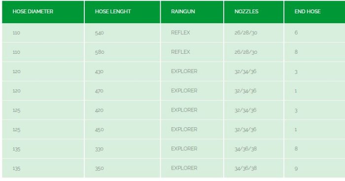 - Set of nozzles EXPLORER raingun from Ø 28 to Ø 40