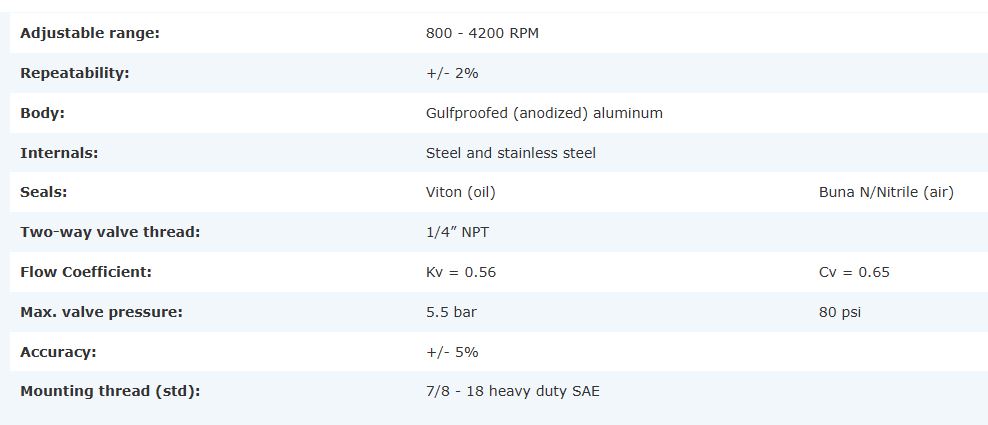 - Available settings from 800 - 4200 RPM in several mounting arrangements - adapts to most popular engine makes and models with ease. Trip setting is field adjustable.