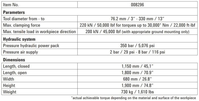 Koller - Model 220 kN -Hydro Vice for Short-Term Clamping of Downhole Tools