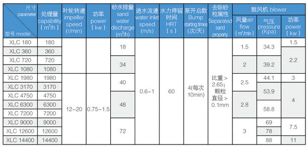 Raw water from the tangent direction, the initial formation of vortex, formed by the impeller in a certain velocity and flow pattern, make adhesion organic sand, wash each other gradually, and rely on gravity and vortex resistance sink into sand hopper center, stripping of organic matter with axial flow overflow go up. The sand accumulated in the sand bucket is lifted by air lift or sand pump, and then completely separated into the sand water separator. The separated sand is discharged to the dustbin (cylinder) for external transportation, and the sewage is returned to the grid well.