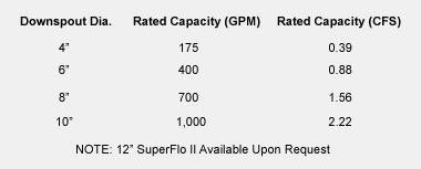 Unlike conventional "bag-in-a-box" filtering devices, the SuperFlo II downspout screens are designed specifically to handle high-velocity, high-volume flow rates without clogging. These conditions are frequently associated with roofs of warehouses, condominiums, office buildings, and parking structures.