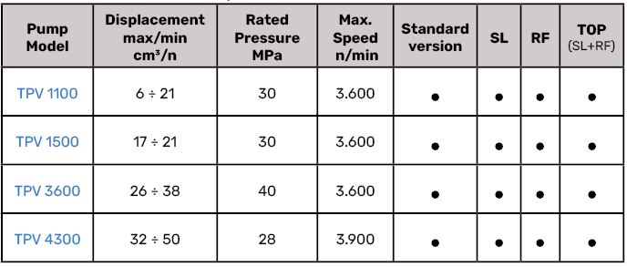 - Closed circuit axial pistons pump –TPV Series: available models 1100, 1500, 3600 and 4300