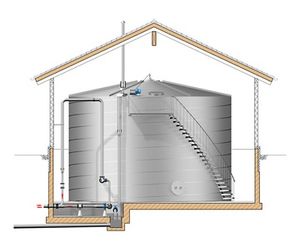 In the high-level water tank system, the hermetically sealed HydroSystemTanks are installed in simple buildings. Thus ensuring excellent monitoring.