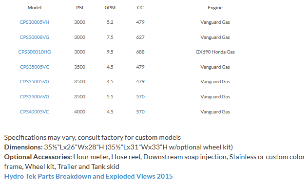 HydroTek - Model CPS Series -Cold Water Pressure Washer
