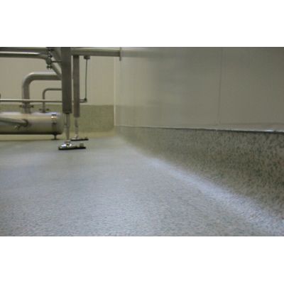 All floor connections like pipe penetrations, drains, gullies, floor scales and other floor fittings can be installed perfectly suitably for clean-rooms without joints. The wall connections can be carried out as jointless grooves or in triangular design und are installed completely free of voids. Microbes are thus prevented from entering under or behind the flooring.