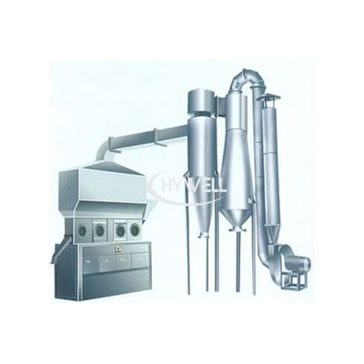 A granular Fluid Drying Machine is also called a fluidized bed dryer. It consists of an air filter, heater, fluidized-bed main machine, feeder, cyclone separator, cloth bag duster (optional), high-pressure centrifuge fan and air pipe, and control chest. Because the properties of raw materials exist differently, when equipping the dust-removing equipment, it should consider the practical need. It can select a cyclone separator and cloth bag duster at the same time or one of them. In general, it needs to select cyclone separator only for raw material that is large in specific gravity and cloth bag duster for powder and small granule raw materials that are light in specific gravity. Meanwhile, there is an air feeding device (sending air fan) and belt conveyor for selection. The raw material is fed into a fluidized-bed drier through the feeder. Fresh air through filtering and heating is sent to the bottom of the fluidized bed by fan and contacts with solid raw material on distributing plate. In this way, the fluidized state is formed and the heat exchange between air and solid is carried out. The dried raw material is discharged from the outlet and wasted gas is exhausted from the top of the fluidized bed which catches solid powder through a cyclone separator, and cloth bag duster. The heating way has different kinds of choice such as steam, electricity or hot air furnace can be used (it can be supplied as client request).