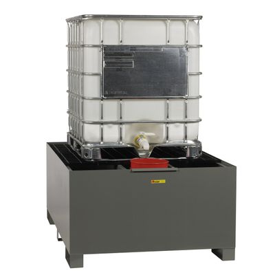 Little Giant heavy gauge steel construction for durability and extended life. Large 400 gallon sump capacity with 10,000 lbs. load capacity. Steel grating deck panels are easily removable for cleaning. Includes drain plug and grounding screw. Helps you comply with EPA requirements. Single IBC Unit large deck surface has room for additional storage. Three piece steel grating deck is 29" high. Convertible deck allows IBC to be positioned for internal dispensing within sump area. Included pail holder shelf attaches conveniently to inside or outside of sump.