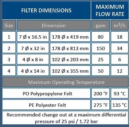 - POXL felt filter bag series is available in 1, 5, 10, 25, 50 and 100 microns