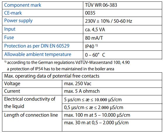 As two-point water level controller plus low level alarm (DLR1) or high level alarm (DHR1) together with the IGEMA conductivity probes, e.g. in steam boilers acc. to TRD/EN or as level controller in tanks with conductive liquids. The product according to PED directive 97/23/EEC annex VII (Module B+D, category II) has the CE-mark no. 0035 of the notified body. Applied rules as per TRD and AD2000.