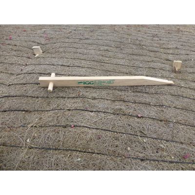 The wooden fixing pin iGGfix beech Q30 is being used for installation of erosion control blankets (iGGmat) and nettings (iGGtecx). We recommend 2-3 pieces per square meter with an angel of slope up to 1:1 (45°). For steeper slopes more than 45° approximately 4-6 pieces per square meter should be used.