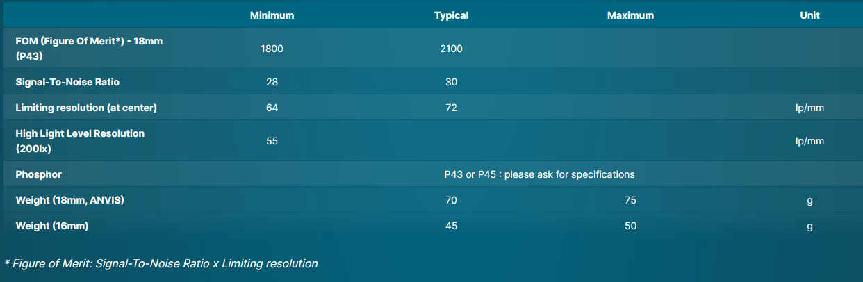 with the crucial tactical advantage of seeing 1100nm lasers target designator that no other image intensifier can detect. With the broader availability of night vision devices, the challenge is to have the best performance image intensifier based equipment that is always more efficient than the one of the opposing force.