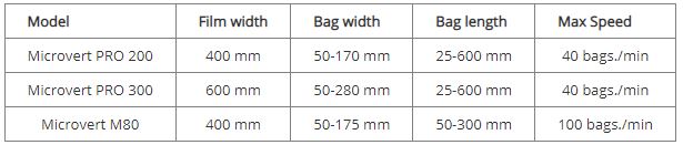 The Microvert PRO is designed to package small hardware or free falling food. It can be integrated in automatic production lines and be synchronized with automatic feeding, counters and scales. PLC controlled.