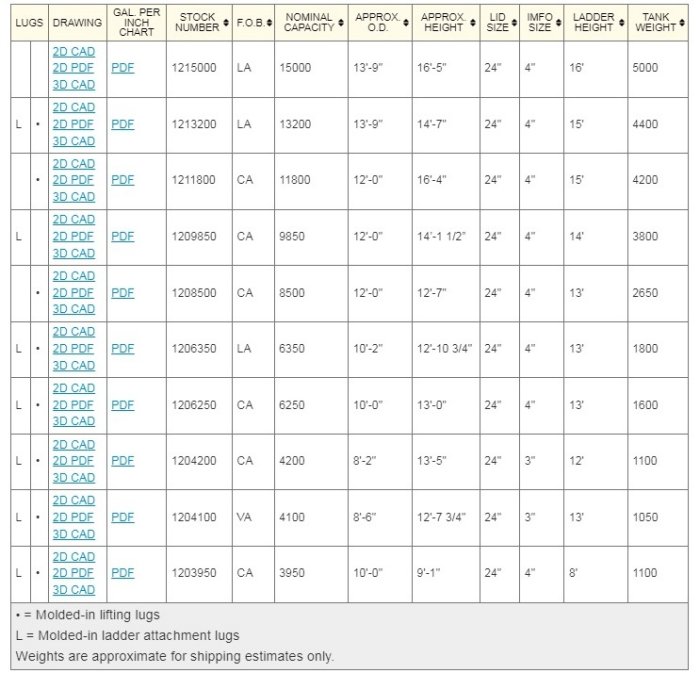 All of the products listed below except for the 13’-9″ diameter tanks are available from all 3 manufacturing locations. Contact customer support for more information.